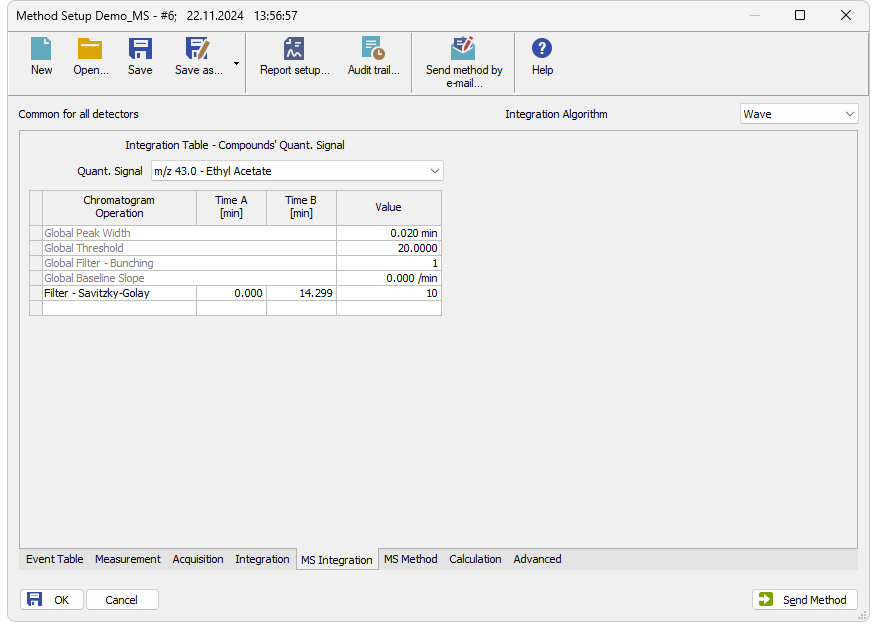 In MS Extension integration operations Global Threshold, Local Threshold or Min. Height are displayed in the Integration Table and logged in audit trail without unit, whereas integration operation Min. Area is displayed in the Integration Table and logged in audit trail with time unit only - [.s].