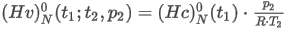 (Hv)0G/N(t1;t2,p2) is the ideal volumetric gross or net calorific value of the mixture at combustion temperature t1