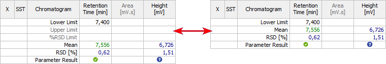 | Subparameters… | Opens the SST Properties - Subparameters tab with the selection of limits according to which parameters will be evaluated (Lower Limit, Upper Limit, %RSD Limit). |
