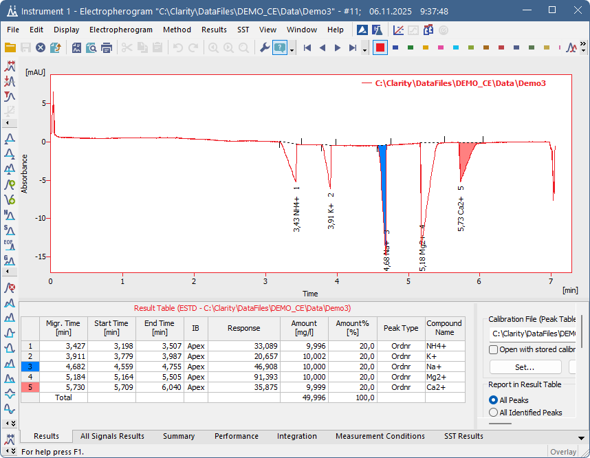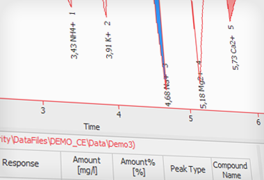 The CE Extension activates the CE mode in Clarity environment and can be activated on any Clarity Instrument. CE Extension is compatible also with Clarity Offline software. CE module provides specific terminology, evaluation by time corrected area and peak identification by peak start or end (additionally to peak apex).